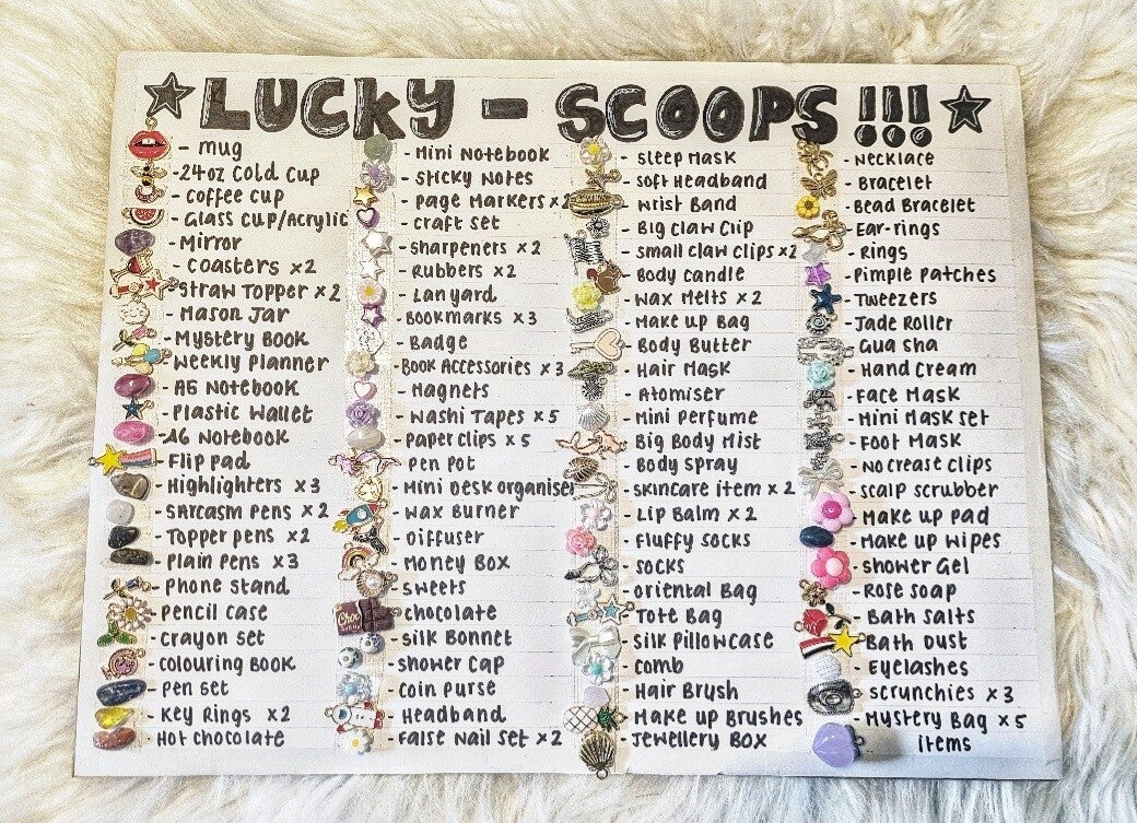 - As you can see, the lucky scoop board shows that a lot of our items come in multiples so your box might include EVEN MORE items.
